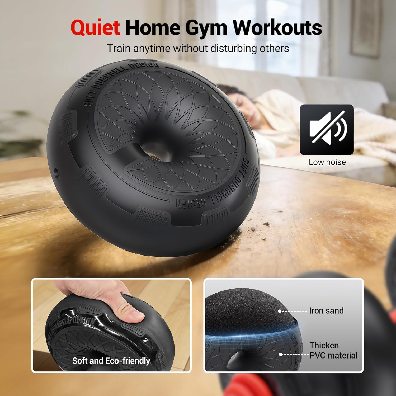 【Built to Last】 The weight plates are made from high-quality PVC material, reinforced with an internal mix of iron and composite fillers. This design offers durability while protecting your floors from damage during workouts.