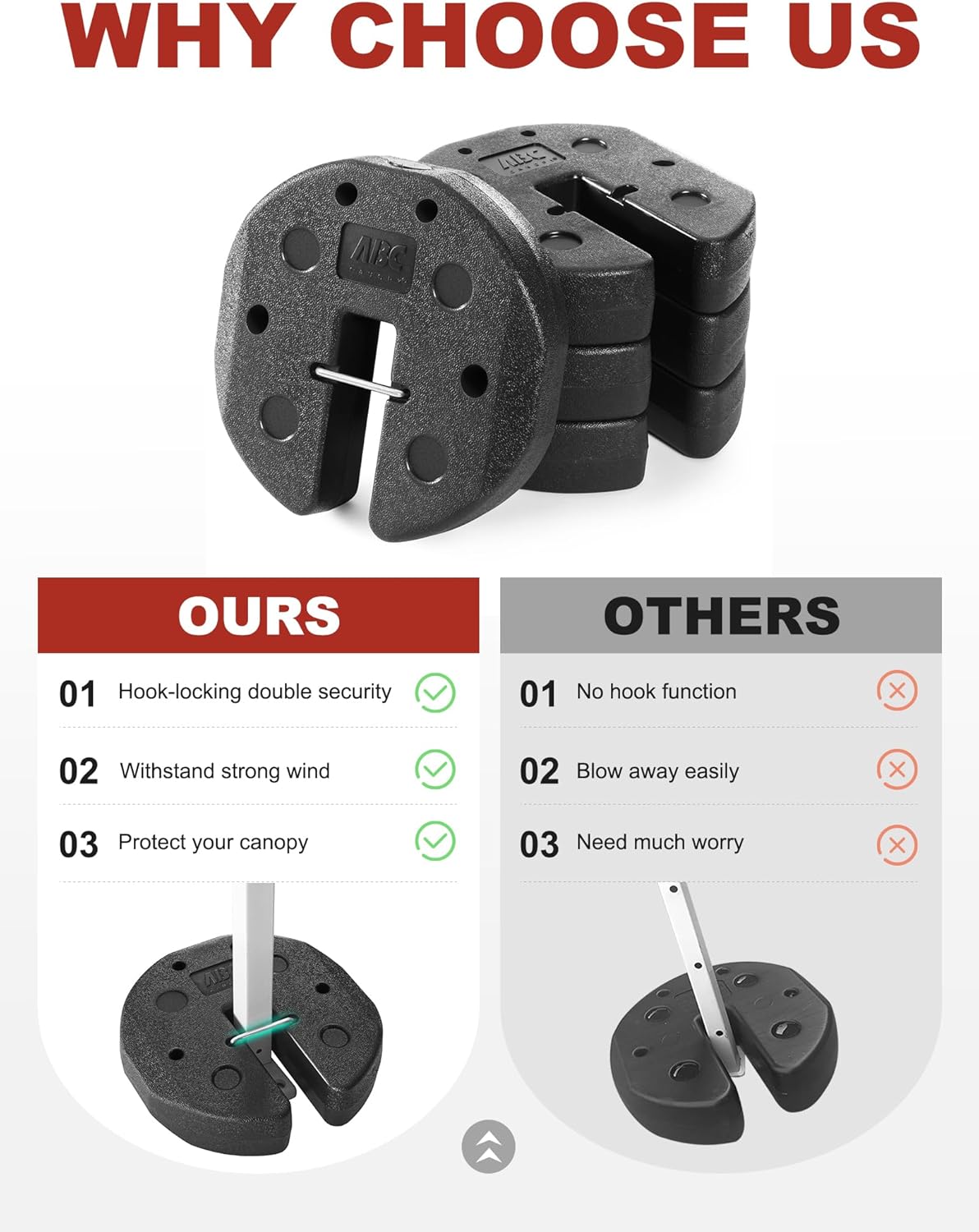 【Multi-scenario Application】 The weights of the canopy can be utilized to stabilize tents, gazebos, patio umbrellas and other outdoor products, ensuring they remain steadier in windy conditions and enhancing their service life.