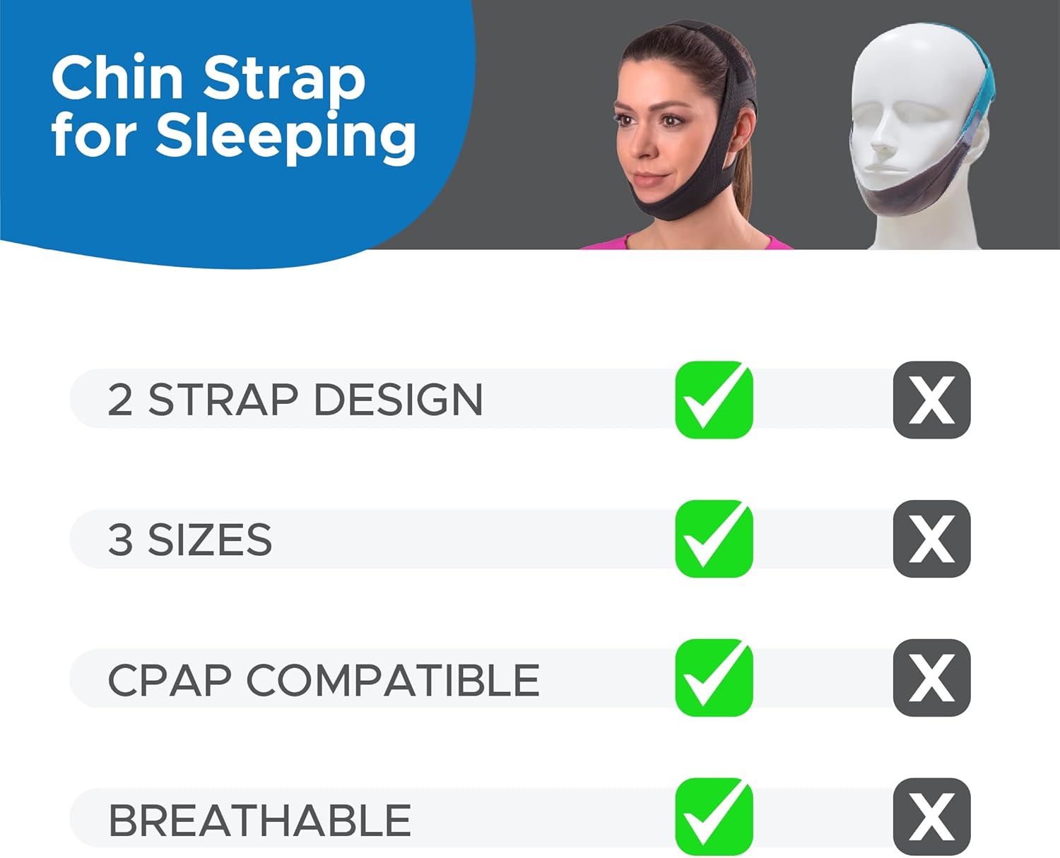 PREMIUM CPAP CHIN STRAP: Designed with snorers and CPAP users in mind. Chin strap keeps the mouth closed, improving CPAP therapy effectiveness, and reducing dry mouth or interrupted sleep.