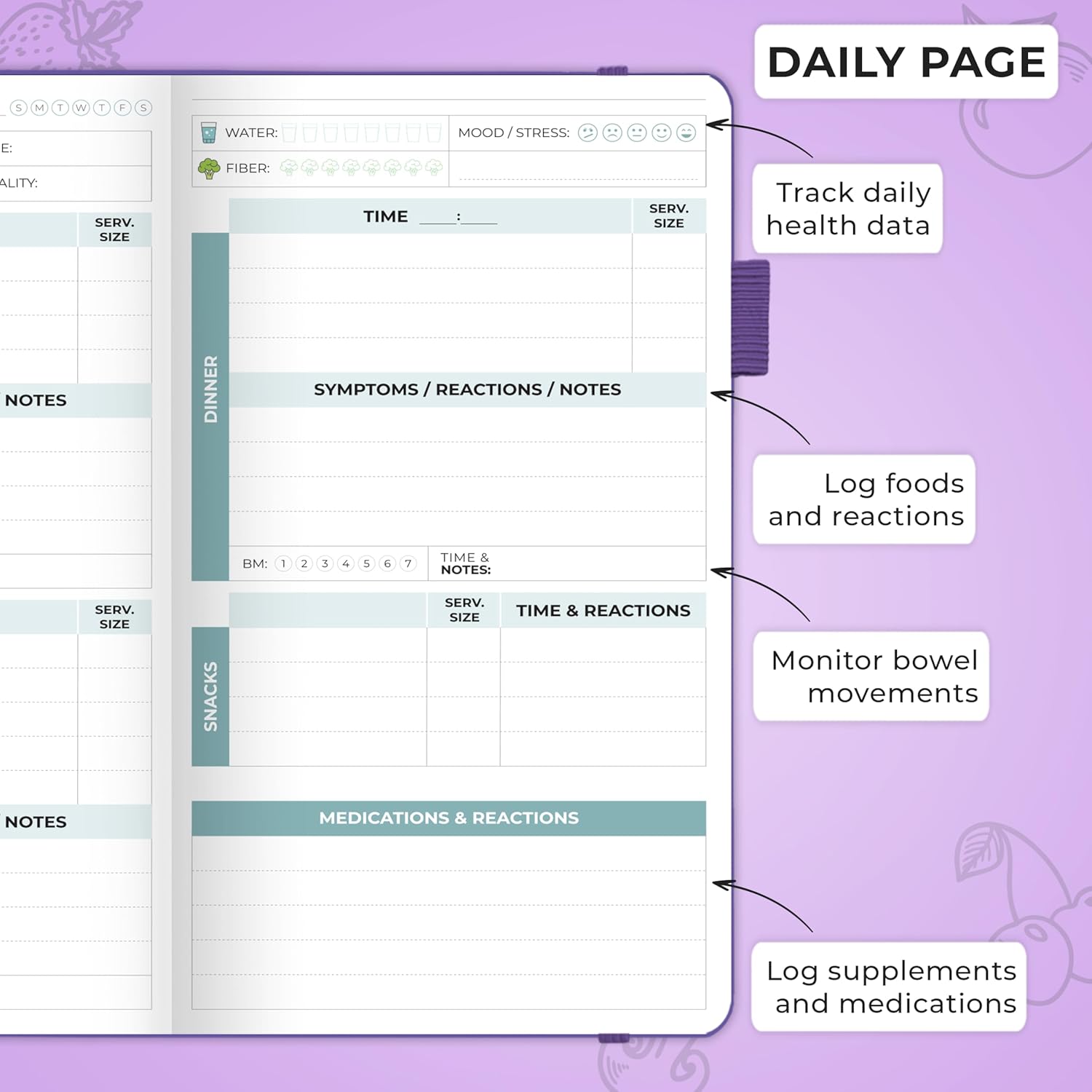 ADJUST YOUR DIET & ROUTINES TO FEEL YOUR BEST: Keeping a detailed and organized food diary and symptom log will help you pinpoint the changes you can make in your diet and lifestyle to improve and support your well-being.