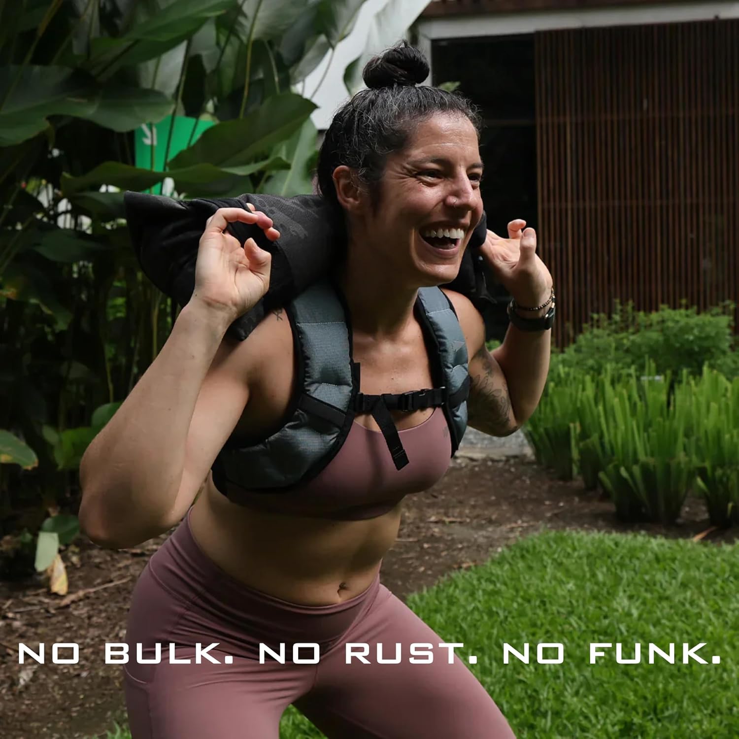 RUST-FREE COATED STEEL PELLETS WON’T SHIFT, STINK OR BURN: Unlike traditional weighted vests, specialty-coated steel pellets prevent rust, odor, and shifting. Anti-funk, anti-rust design built for long-term performance won’t irritate or burn your skin. Durable 420D Robic exterior and nylon spandex interior make this the cleanest running weighted vest available.
