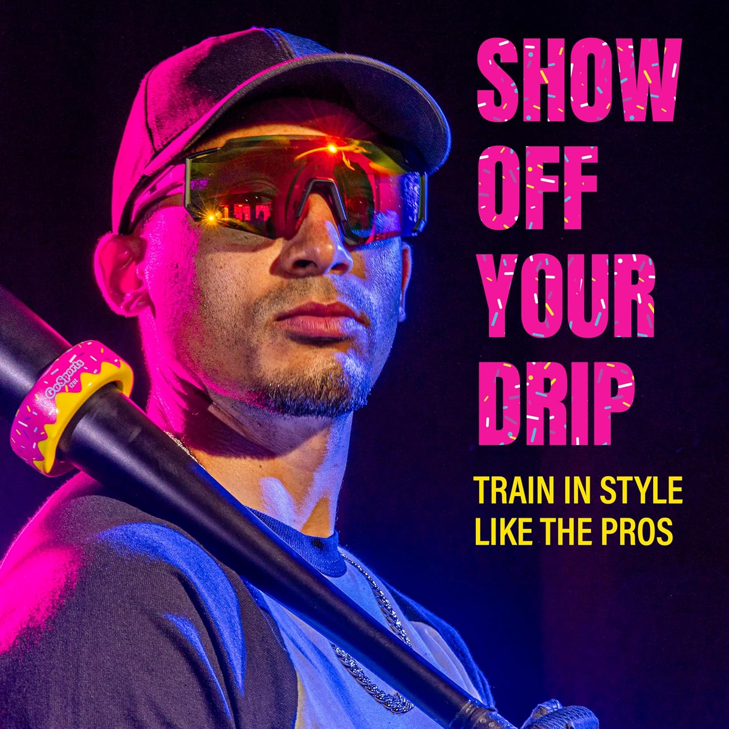DONUT DRIP: Sprinkle some power on your swing; Train and warm up in style with our donut designs inspired by the latest baseball swag and trending pro players; A fun and functional alternative to our top selling bat weights