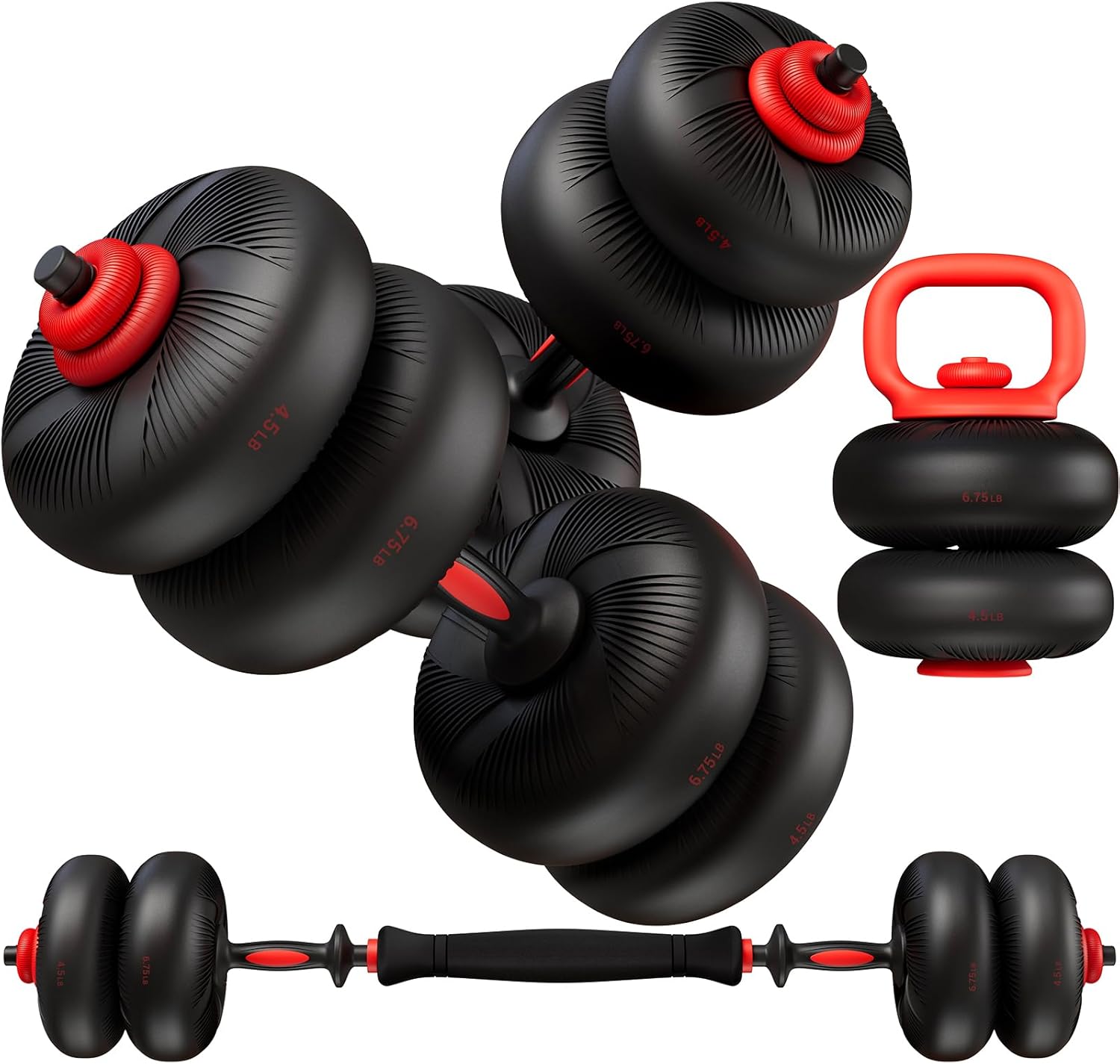 Perfect for All Fitness Levels: Whether you’re a beginner in weight loss, an athlete in strength building, or seeking rehabilitation and functional training, this set grows with you. Easily adjust from light to heavy (single dumbbell or barbell: 9-27 lbs) for HIIT, cardio, or muscle toning.
