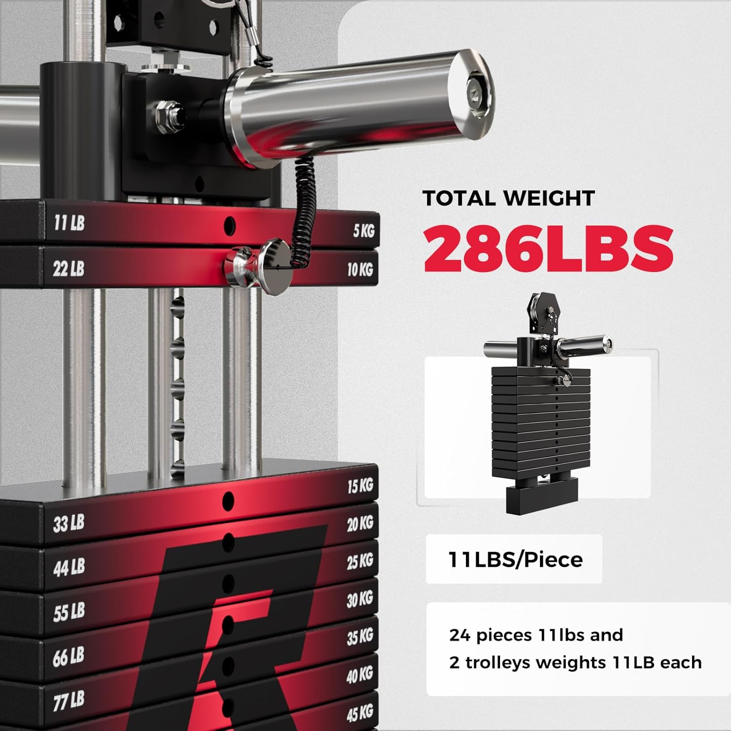 More Than 10 Accessories Included: The M1 comes fully equipped with a variety of practical accessories, including a Landmine, T-bar, Dip Handles, J-hooks, Safety Spotter Arms, Band Pegs, 2 Exercise Handles, and a Foot Tube. These additions significantly expand the machine’s functionality, offering users a complete and diverse workout experience.