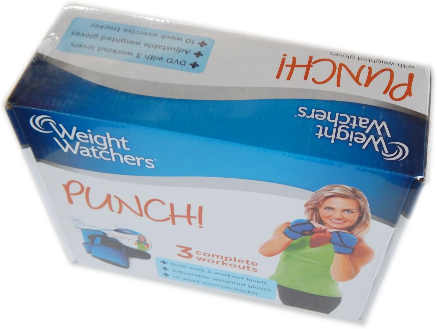 Punch, squat and kick your way to fitness! Punch! is a new low-impact workout filled with powerful boxing-inspired moves designed to help you burn calories and firm your body. With this nonstop workout, you’ll feel like you’ve conquered basic training. The key to Punch! is that it incorporates weighted boxing-style gloves that were specifically created to enhance the benefits of aerobic activity (without the risk of overextending your arms with heavier weights). Gloves are made of soft, long-lasting neoprene with an open-palm design that fits comfortably across the back of your hands. They have quick-release closures with finger and thumb holds. The enclosed DVD features three super-fun workouts-progressing from beginner (30 minutes), to intermediate (35 minutes), to advanced (45 minutes). The workouts- designed specifically for Weight Watchers® members-are high energy, but low impact so they’re easy on your joints.