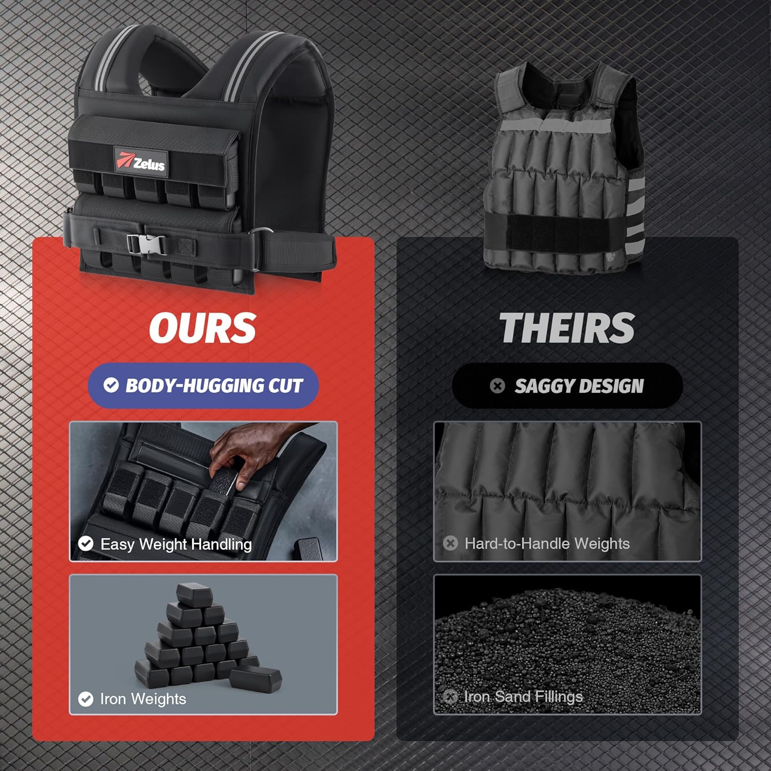 Pick Your Load: Available in 23 lb., 36 lb., or 45 lb., Zelus weighted vest men matches your workout intensity. Each vest includes 10, 16, or 20 corrosion-proof iron weights that stay securely locked in modular pockets